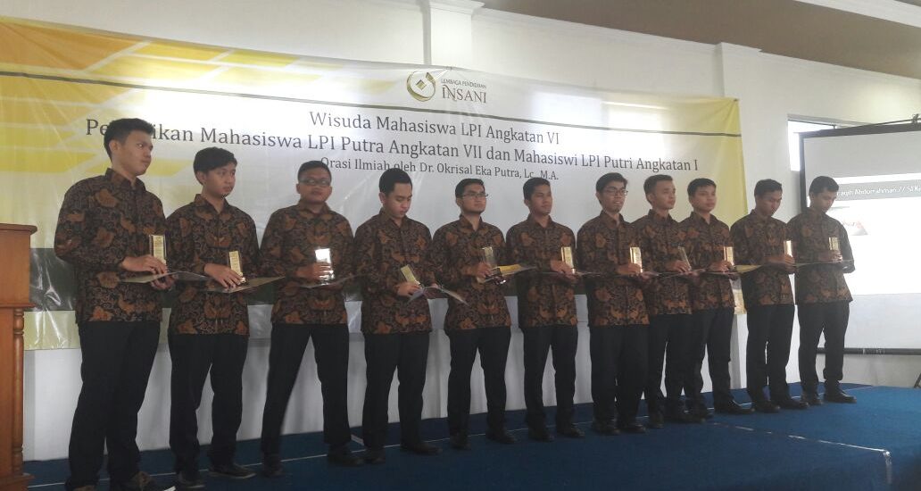 Lembaga Pendidikan Insani (LPI) Yogyakarta melakukan wisuda Angkatan ke-6 dan pelantikan santri baru LPI Putra Angkatan ke-7. Kegiatan tersebut digelar di Aula Gedung LPI Yogyakarta, Minggu (15/10). Wisuda dan pelantikan santri baru tahun ini diisi dengan orasi ilmiah Dr. Okrisal Eka Putra, Lc., M.A.